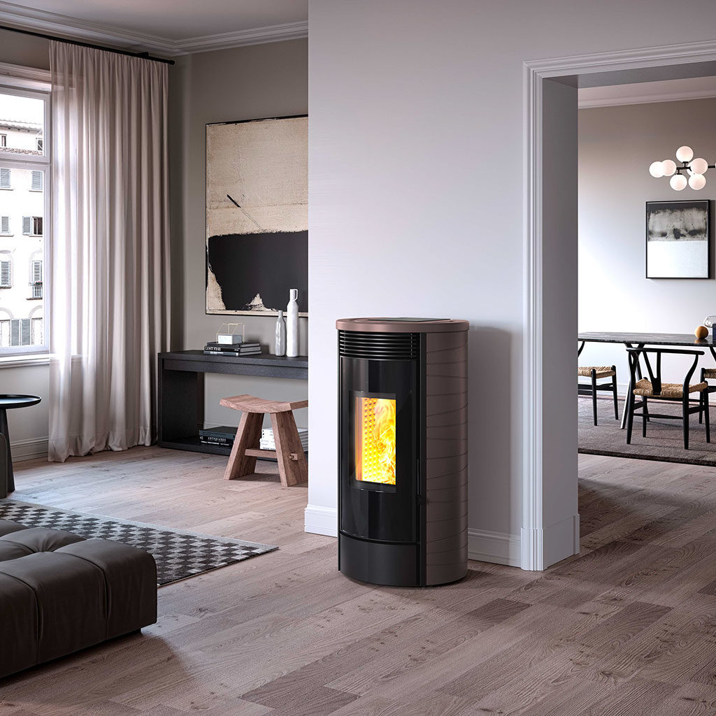 Le poêle à granulés TCi est un poêle à granulés étanche sous avis technique du CSTB. Il possède une ventilation frontale désactivable pour plus de confort acoustique. Il est également équipé de deux sorties arrières canalisables pour vous permettre de chauffer 3 zones séparées de votre habitation. Le système Beefire et les 2 thermostats inclus facilitent la gestion du poêle et de la température de chaque zone. Le poêle est présenté avec un élégant habillage céramique en ton mat. Ses liserés soulignent harmonieusement sa silhouette ronde.